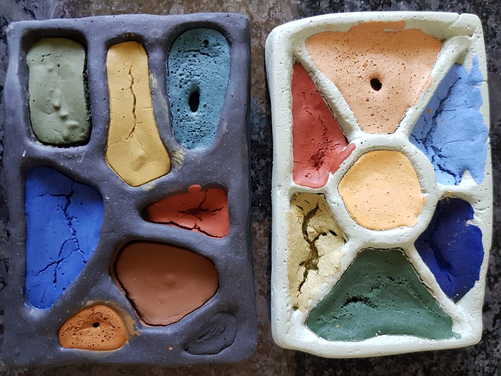 Oft erlebt man Überraschungen wenn man verschiedene natürliche Pigmente zusammen mischt, da sie sich nicht verhalten wie die künstlichen Pigmente.